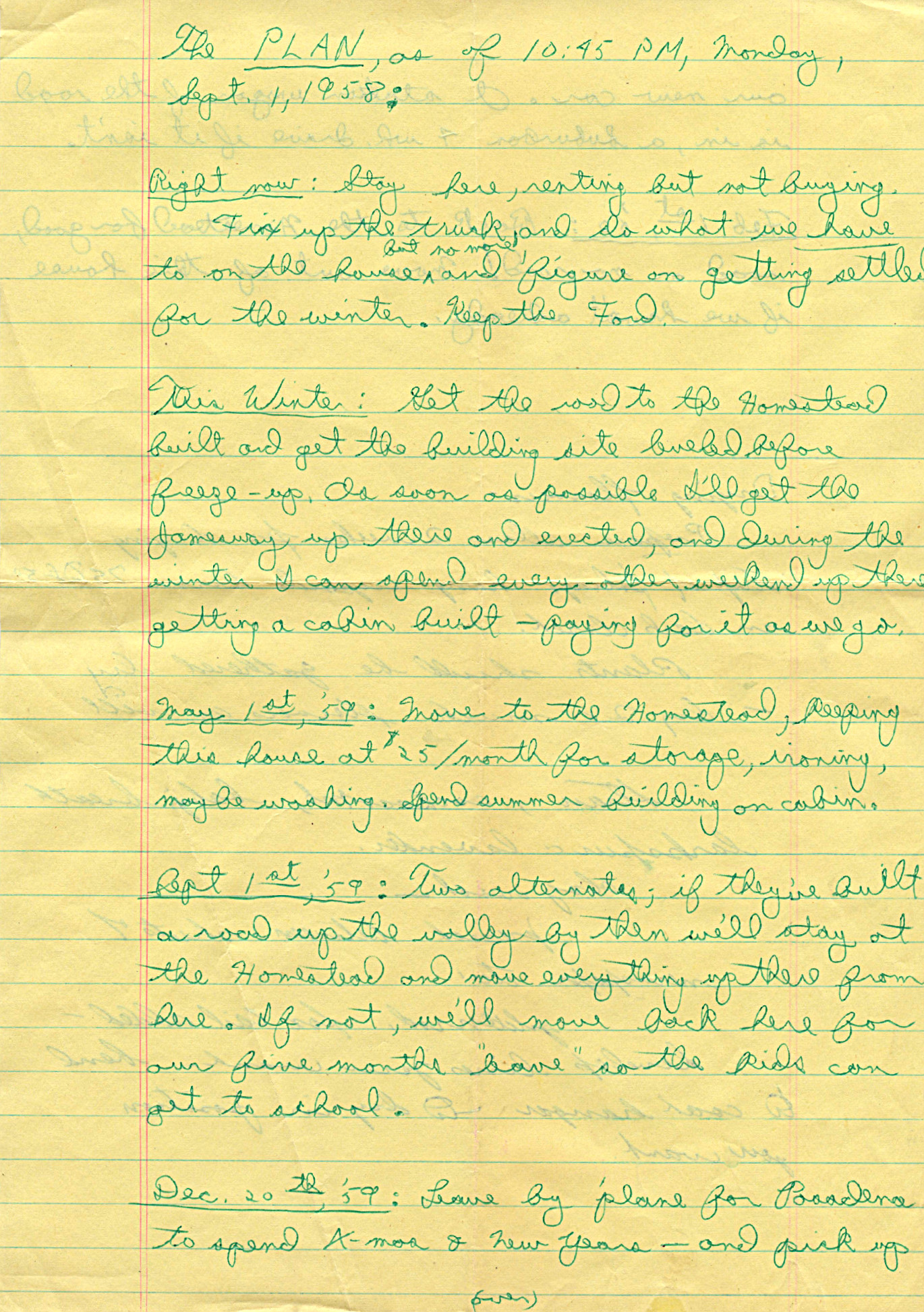 I just finishing transcribing another version Mother wrote about the decision they made to move to leave Los Angeles and move to Alaska. I like this one better. There is no indication of when it was written, but I think it was written before the one I posted last night.