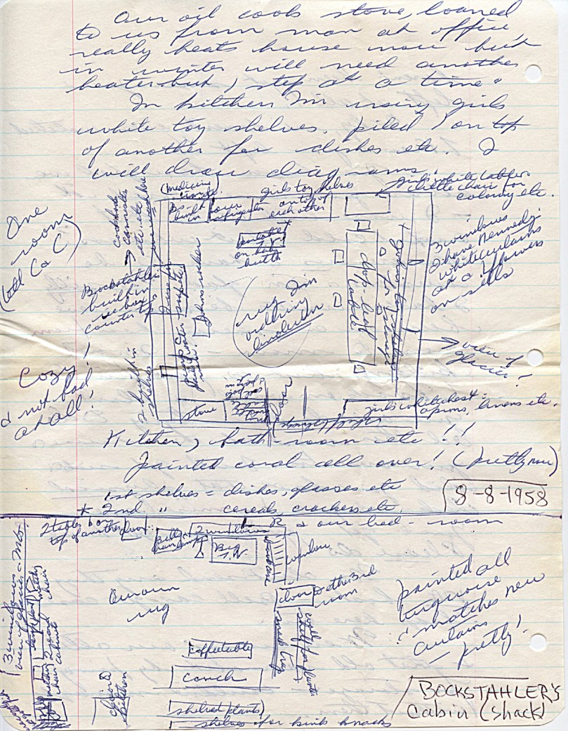 He will sell these five acres for 4,000 – 1,000 down and it’s a bargain as prices stand now because it does have a partly finished house (he lived there two years) of three rooms and a well! [Bockstahler’s ‘shack’ or ‘cabin’ we rented later in the summer]