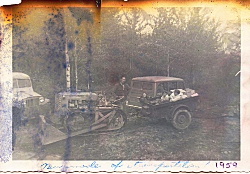 Oh, how my moods change here – awhile ago, well, hours ago not I was so happy! I was out gathering wood and heard a tractor coming – my, such excitement – the children all came out, (it’s been showery all day) and we ran to greet it. It was our operator [‘cat skinner’ tractor operator]. He had come to inform me that he would help Bill bring my first load of household things up when bill got home from work.