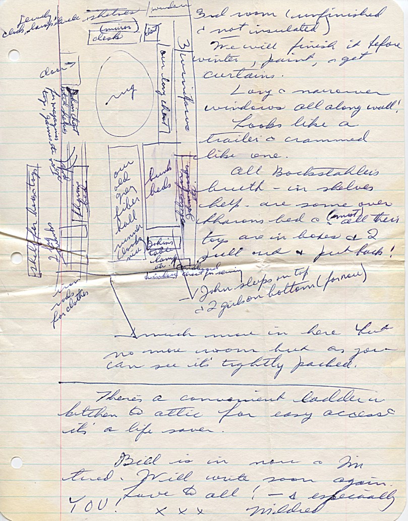 The part that hurts me the most is that there are no hicks Mom, here. The people are refined, educated and plain NICE – they come from California mostly (Funny). They’re just like us and they homesteaded. They did without electricity, roads etc. – even five years ago Mrs. Briggs didn’t have electricity here! In fact, while building this place – it’s seven years old – they saw a bear in the yard! And one time a baby bear was looking through our dining room window! So there!!