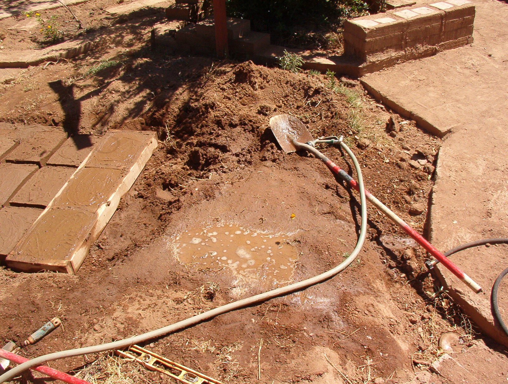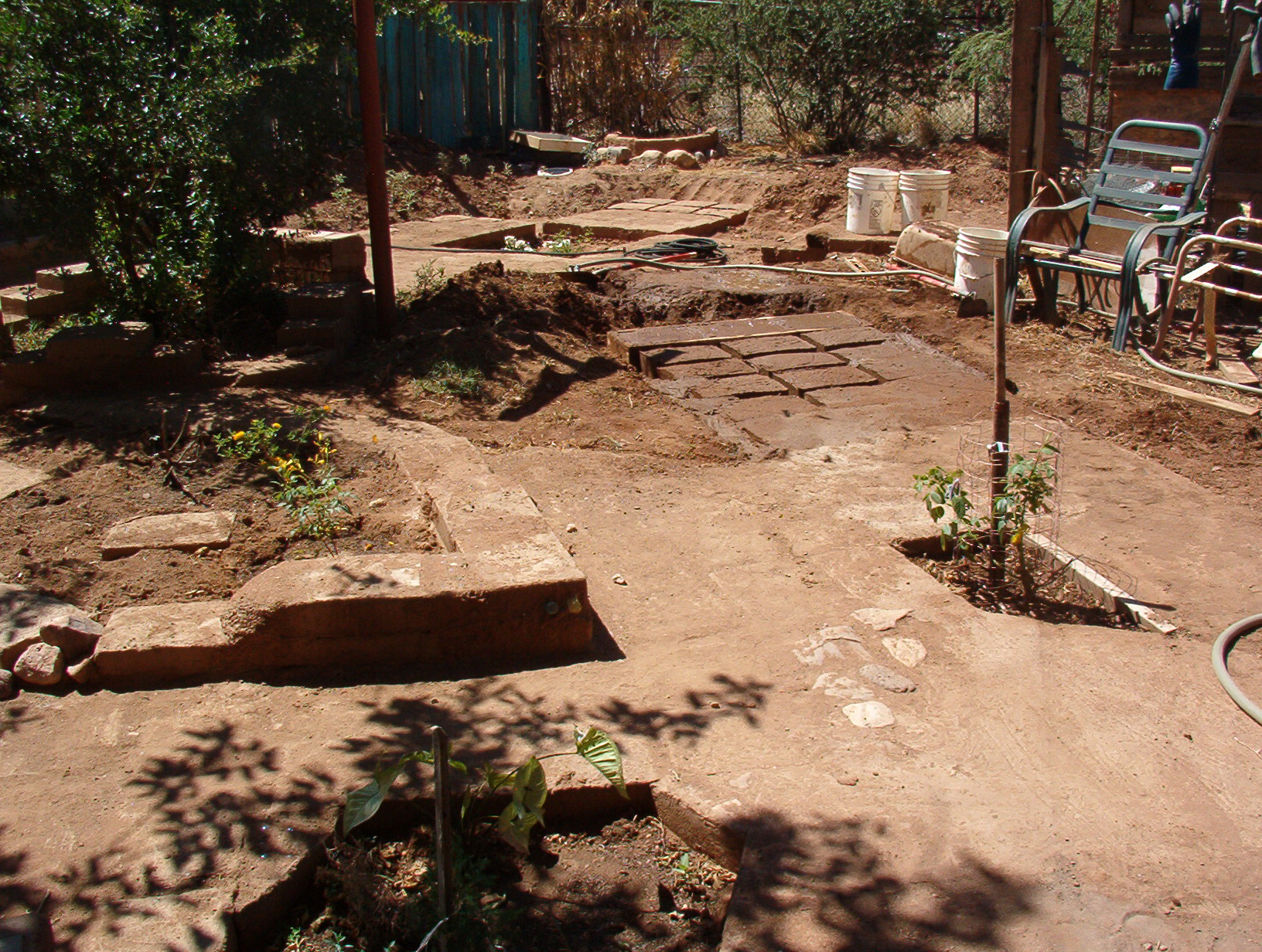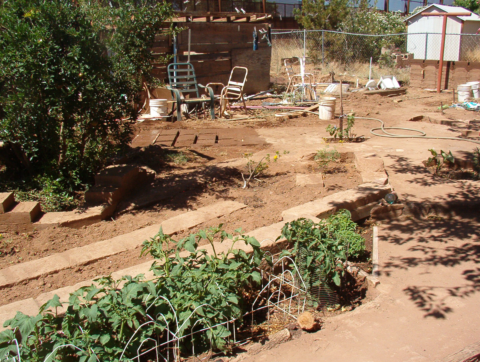It has happened. Eleven A.M. and too hot to work any more outside. Progress thus far: