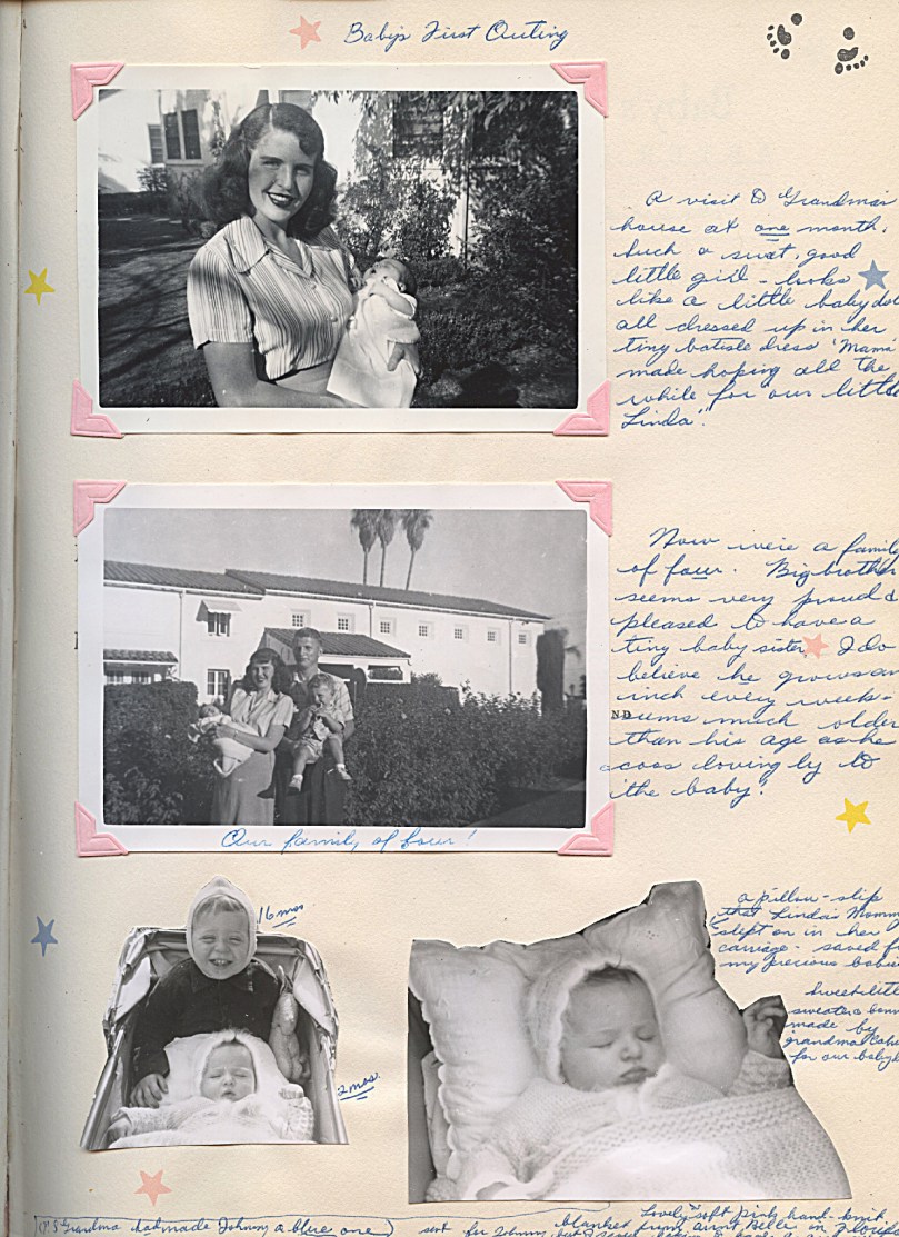 I believe that her efforts to form ‘Linda’s baby book’ in a right and publicly acceptable (and applaud-able) fashion happened because she TRIED to pretend ‘at least this much’ about herself and her daughter – me. But in the end she could not even really pull that effort off — hence the baby book was hidden away while she told ALL of her children that it never existed at all.