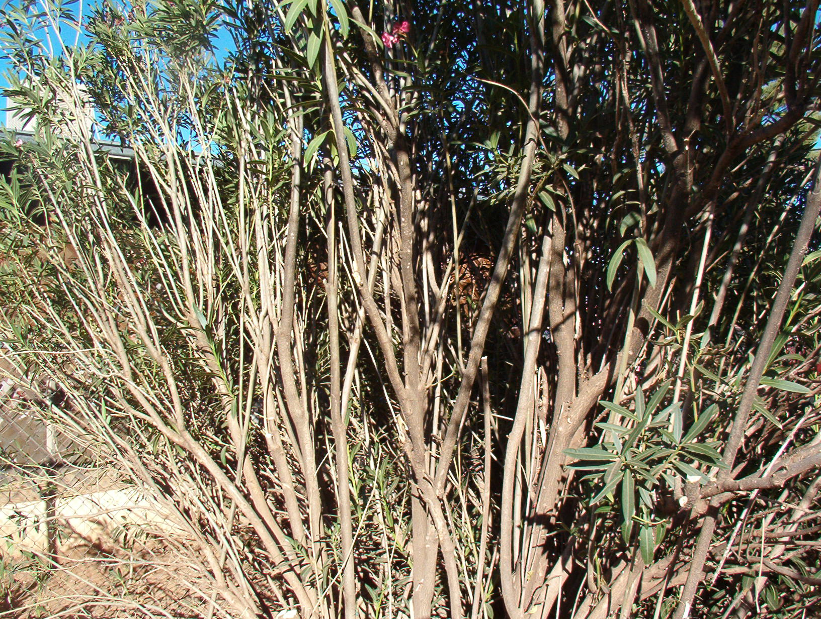 And then there is the oleander, the toxic, deadly poisonous overgrown hideous out-of-control oleander that is stretching its branches out in every possible direction from its very old roots that are equally entrenched in the earth where somebody planted it/them.