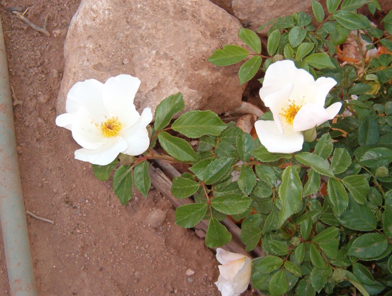 I have a very simple, delicate rose that has begun to bloom in my back yard. The flowers have few petals, meaning that this rose is very close to its wild relatives. Its small buds have a faint yellow-peach tinge to them, but when they open the flowers are light pink-white. As I stop in passing to gaze at these flowers I think about how perfect they are – how pure and how perfect. Although each one of them is a new creation, a flower that has never before now bloomed in all the history of this world, each is also following a pattern over which this rose has absolutely no choice but to fulfill. These roses are both their own unique self at the same time their range of existence is extremely limited.