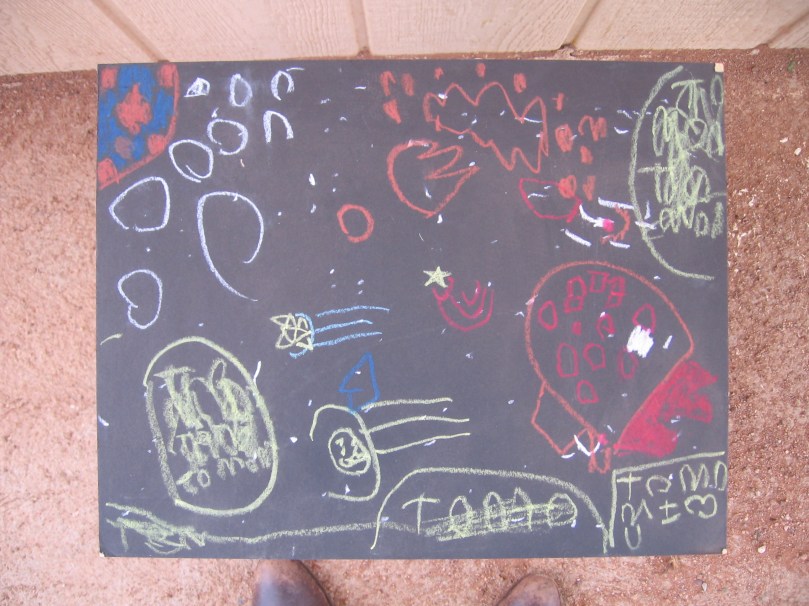 And speaking of the passage of time, I finally today photographed this picture my son, who is now 26, created when he was 6 weeks away from his 6th birthday. I kept an art portfolio of every piece of art my son did until he left home at 18 — but this piece NEVER left my side!