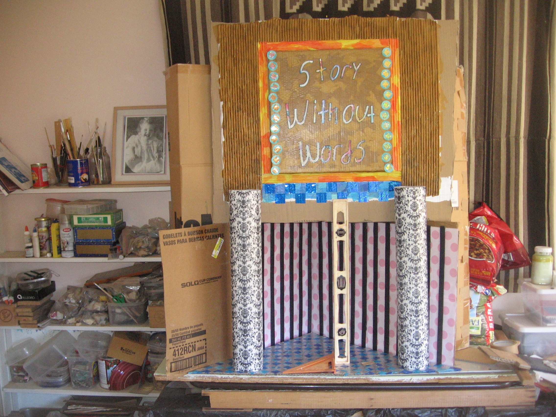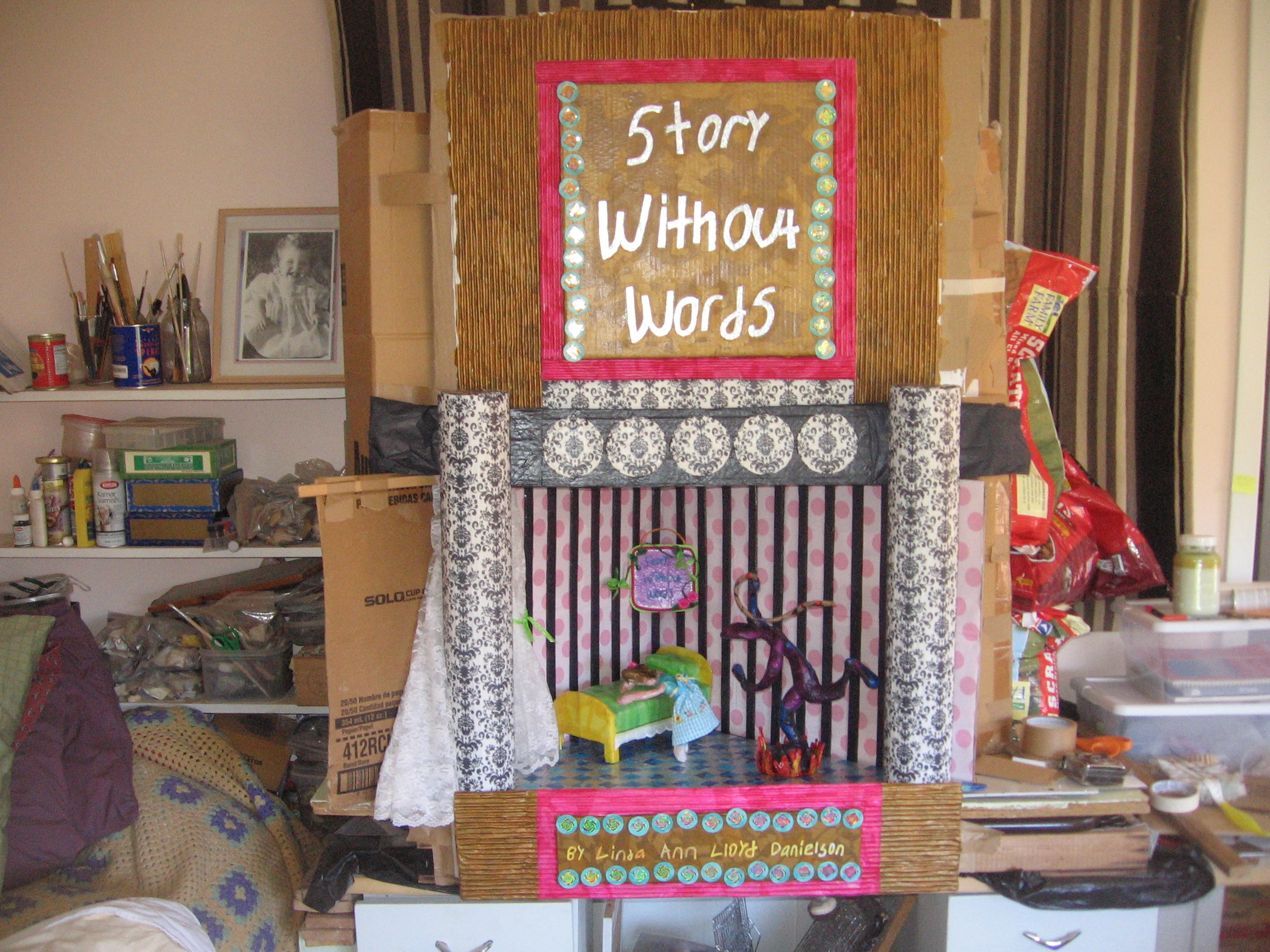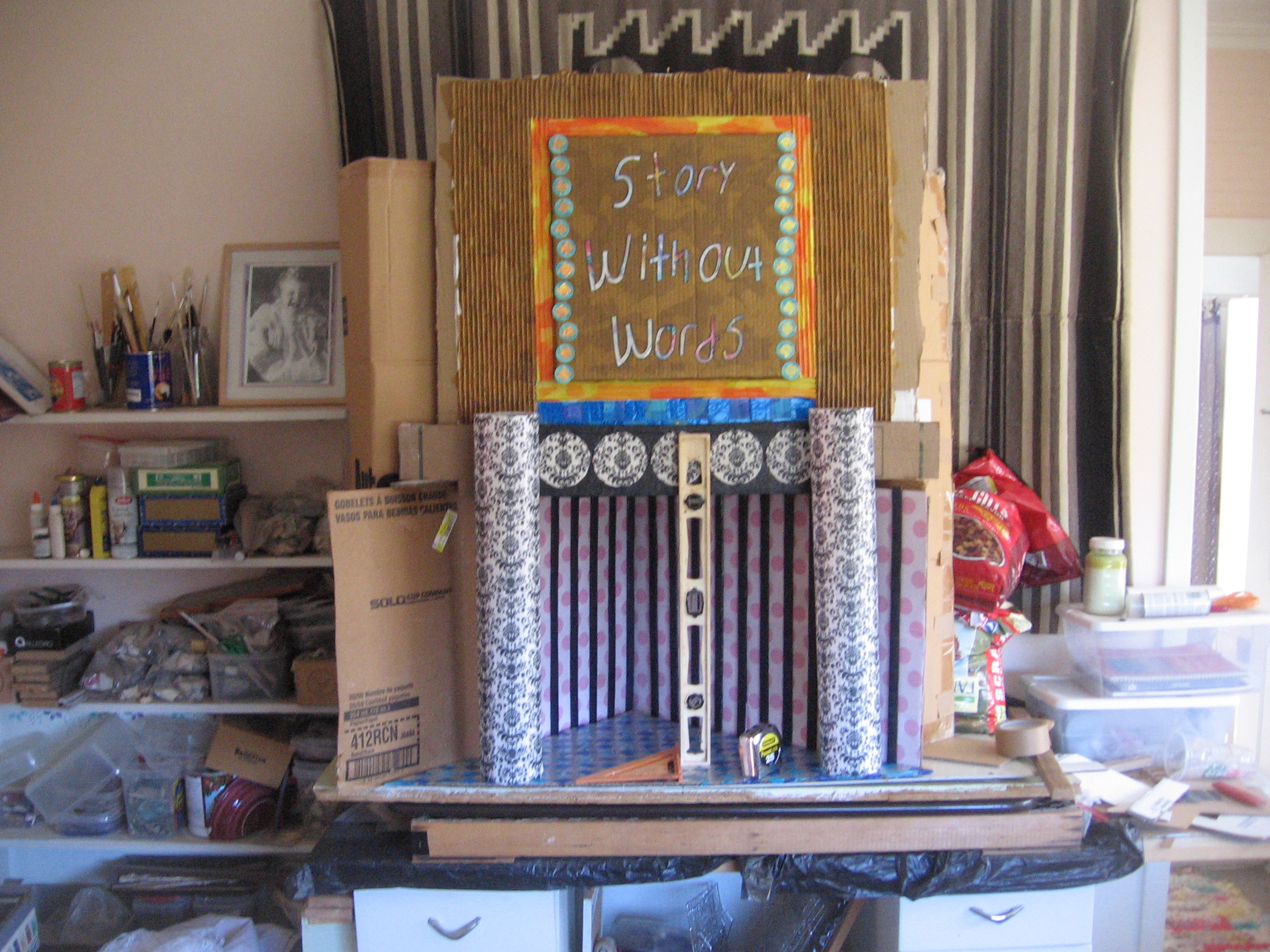 As I have mentioned it is taking me far longer to make the cover of the book, Story Without Words, than it did for me to write it.  At this point, while I appreciate the creativity I was born with, and while I am grateful for each piece of tape, drop of glue, measuring instrument and piece of paper I have as a resource toward this construction, I actually feel afraid that because I have not a cent to hire someone to make this cover whatever I bring to this task is not going to be GOOD ENOUGH.