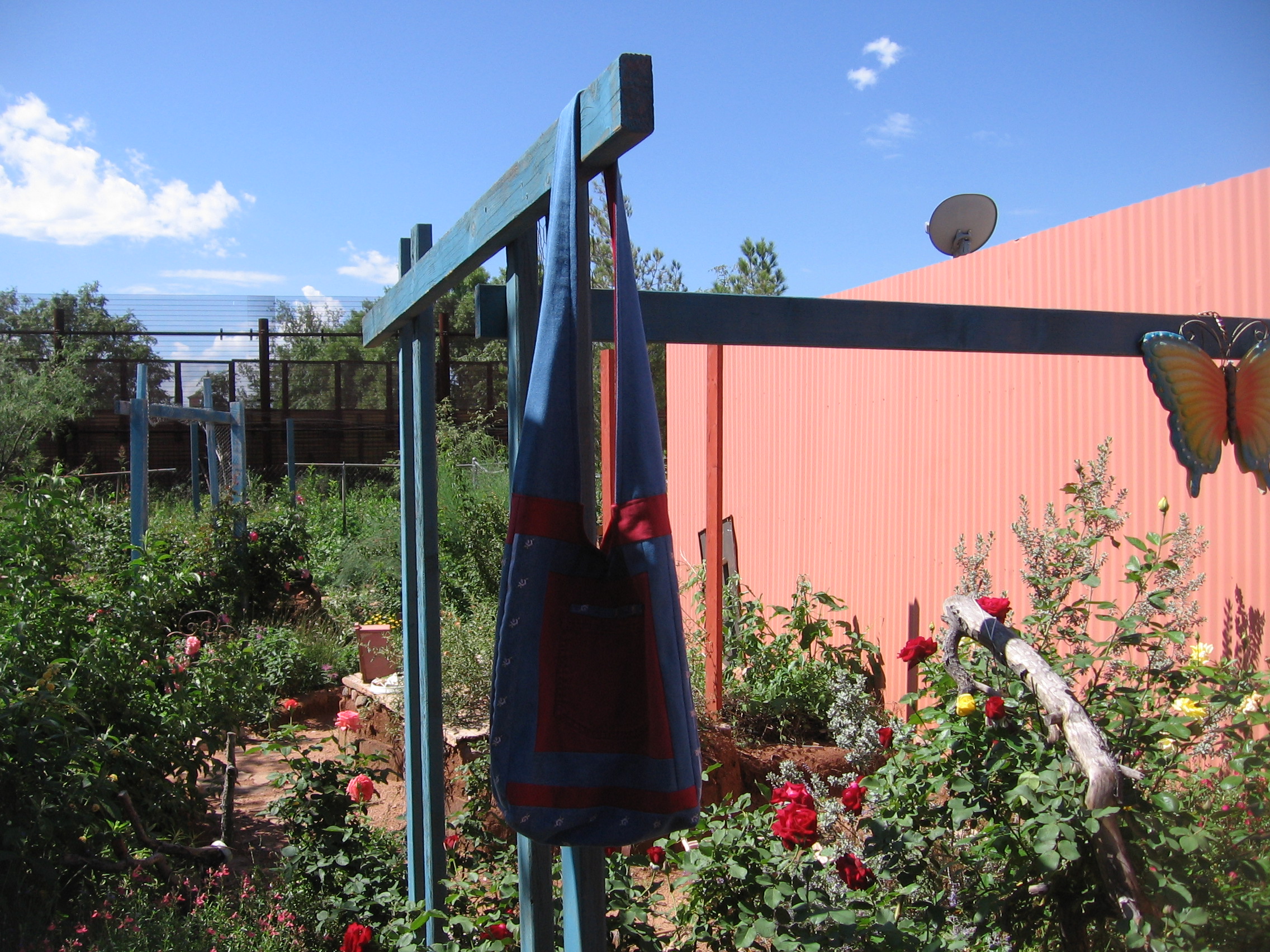 It is the artist and the art therapist in me that created my adobe peace garden (link is on a tab at top of this page to pictures of it) and sews my way through the ending of a 14-year stage of my life. Dirt and mud and seeds — or — repurposed fabric and thread. Makes little difference to me in the end. It is the living process of creating that fascinates, captivates and heals me.
