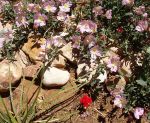 So the small patches of flowers I grow here have their impact not only for their color, but for the time taken of my life to care for them, to maintain their lives. The desert here has few flowers of its own, but they are marvelous. Given a single season’s particular patterns seeds can germinate here that have literally been dormant for hundreds of years. Those ones once viewed become part of the historic opportunities of a millennium.