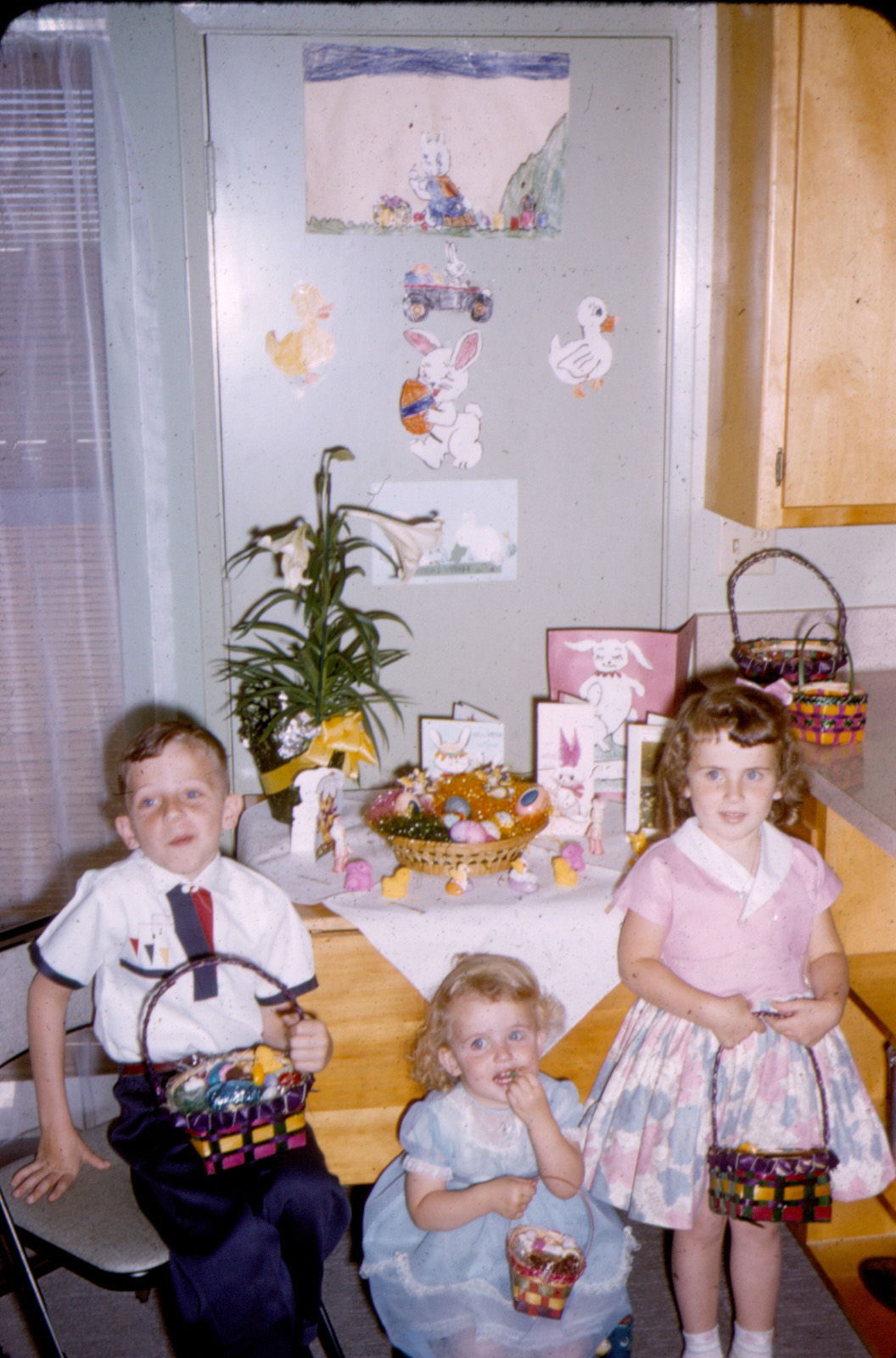 Easter 1957 - My Easter basket must be on the counter by the wall -- My siblings are here, I am being 'punished' probably banished in bed for 'The Fox Incident' from the night before. Mother wrote on this slide's casing 'Easter 1957 (children)' -- NOT ME? There is nothing I can wish more at this moment than 'Someone should have RESCUED me from her - forever!'
