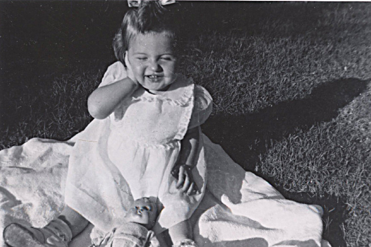 Eleven months old - very intense blue eyes! Mother is pregnant with my sister, Cindy born July 10, 1953