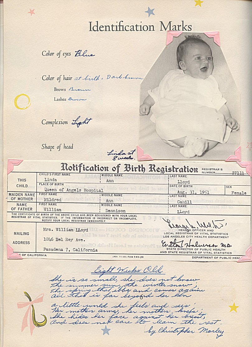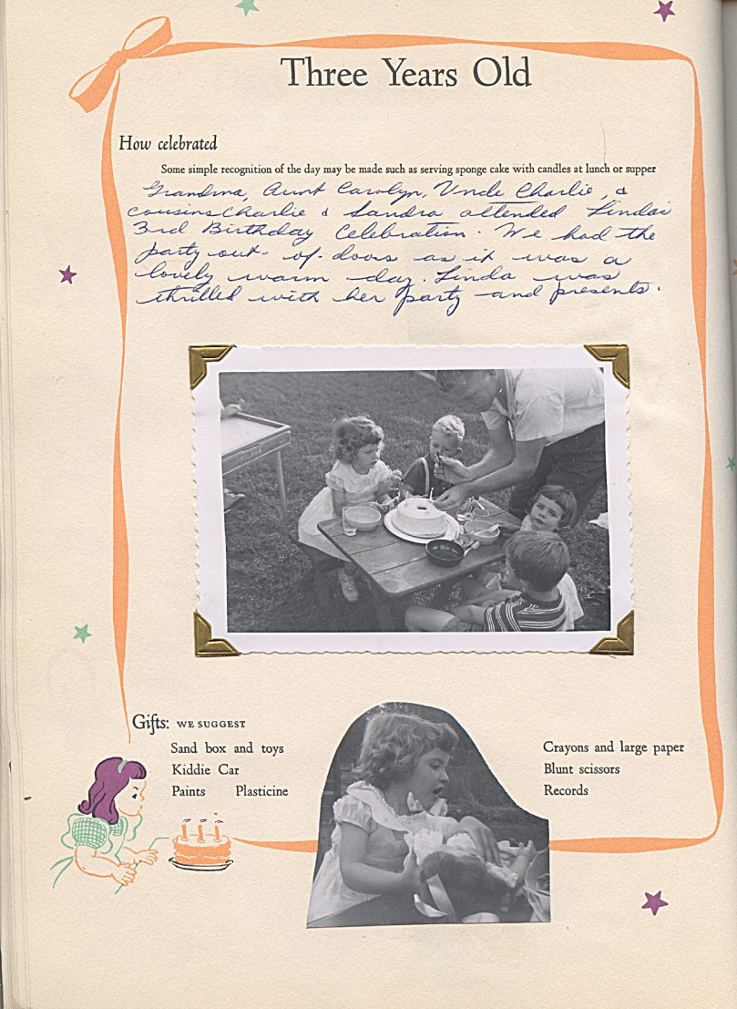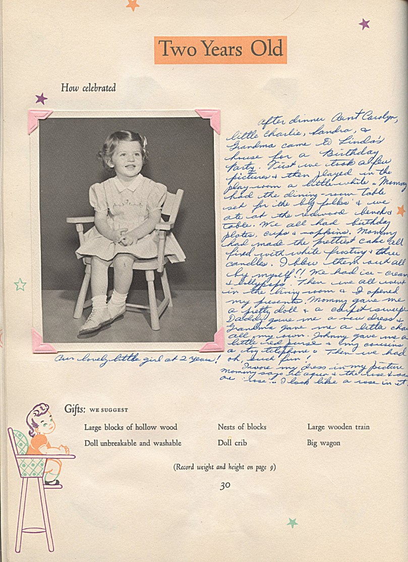 All of my childhood and adulthood, I and my siblings were told that “Linda does not have a baby book.”  My siblings had one.  My mother repeated over and over again as a part of her abuse litany:  “Linda, you were such a bad, horrible, difficult, impossible child from the time you were born that I could find nothing good about you to write in a baby book.  If one has nothing good to say it is better to say nothing at all.  Therefore you do not have a baby book.”