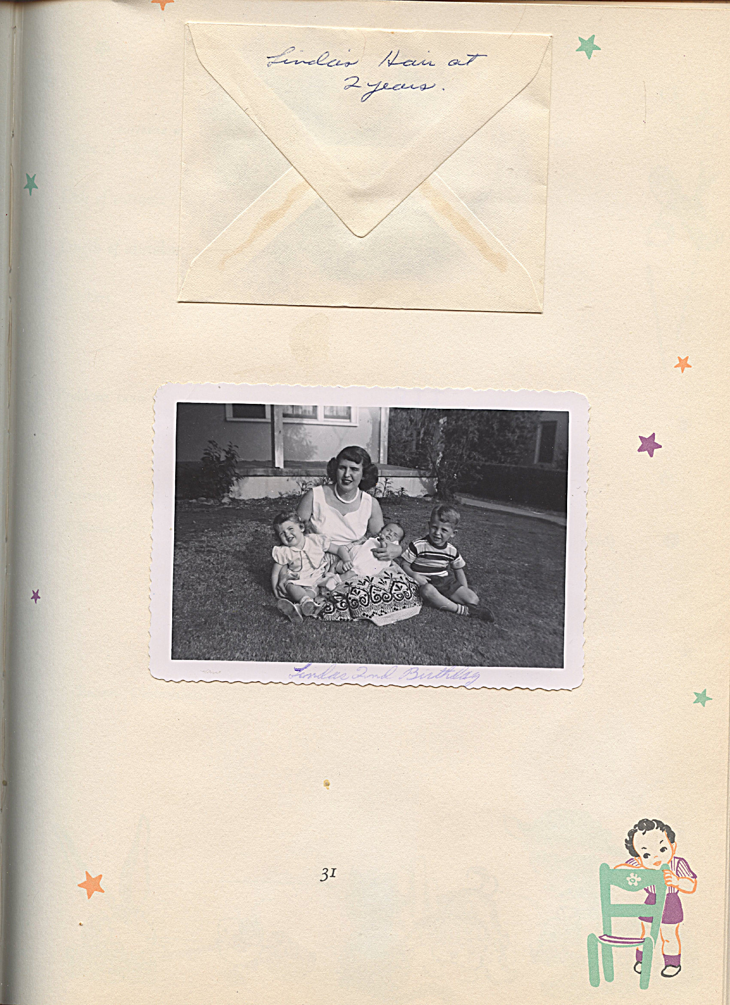 There it was.  The nonexistent baby book.  I mailed the other two off to my siblings.  When my brother received his in the mail, he told his wife, “If my sister Linda does not have a baby book, I don’t want mine, either.”  He threw it in the trash without opening it.  His wife secretly retrieved it.