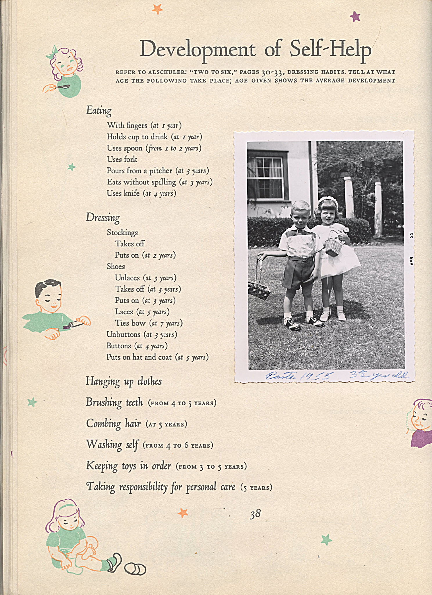 I think I look old for being just two in this picture. I can sense my mother's disorganized-disoriented attachment in her words here, and yes now I can hear the hysteria my sister-in-law heard in my brother's baby book. My mother is clearly using a mask here, no matter how 'cute' her intentions. That she is clearly writing about my SECOND birthday and yet specifies that there are THREE candles on the cake. Considering insecure attachment and the incoherent narrative, I find it interesting that my mother actually chronicled the events in time and space that transpired here.
