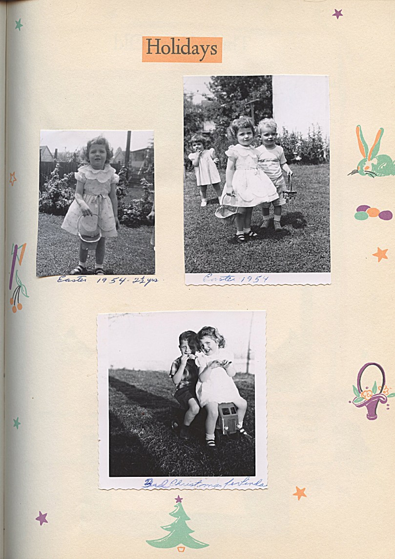 Easter 1954, lower picture my brother and I on my third Christmas - someone needed to save us -- but with this picture perfect mask and facade, who knew?