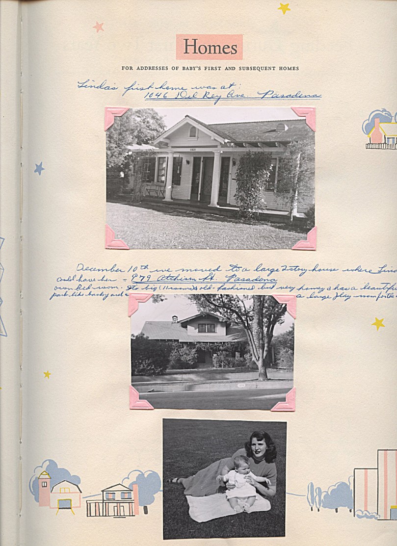 There are conflicts in my mother's accounts of the moves made before the move to Alaska, but here are the first two houses of my life, and me with my mother.
